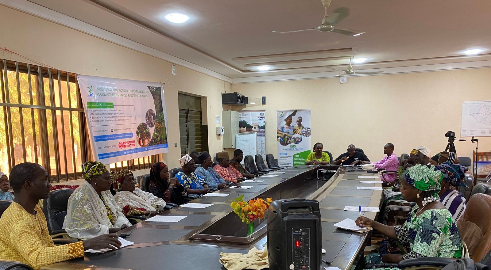 The ceremony featured the official launch with the Mayor of N’Dali and Save Our Planet’s President, Ms. Aichatou Balla, collective validation of focus group results, and approval of a priority list of 30 medicinal species and garden sites.